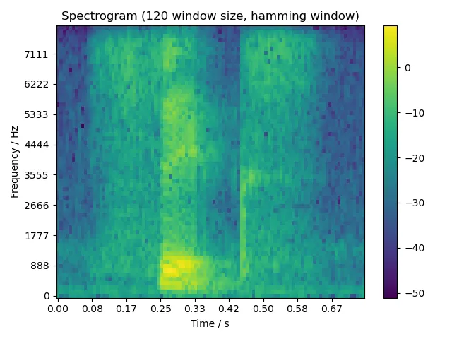 return 0.54 - 0.46 * np.cos(2 * np.pi * n / (m - 1))最后我们将此矩阵转置,并将信号幅度的计量单位转换为 dB。