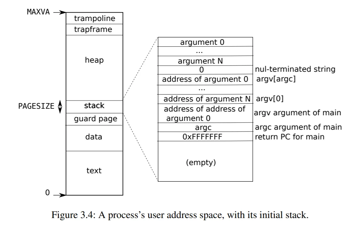 如图所示1,trap frame 的实例保存在进程的用户地址空间(user address space)。为什么 PCB 中仅存储 trap frame 的指针?因为 trap frame 是一个保存了所有通用寄存器和一些特殊寄存器的结构2。一方面,trap 时需要用到 trap frame 中的数据,所以它应当以某种形式存储在 PCB 中。另一方面,trap 时我们只能传入 trap frame 的指针,因为硬件没有足够多的寄存器来传入整个 trap frame 结构。因此,在 PCB 中仅存储 trap frame 的指针是一个节省空间的方案,这样 trap 时只需一个寄存器即可传入 trap frame 的指针。